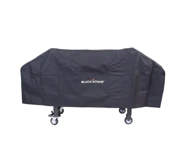 Protect your 36 in. Blackstone Griddle with this heavy-duty polyester cover. Made of double layer 600 Denier polyester with reinforced corners for durability and wear/tear resistance. Water and UV resistant. Sealed seams help prevent water penetration. 2 under-body nylon straps buckle together to secure the cover to the Griddle Cooking Station. Beautiful logo embroidered on front that makes a quality statement.