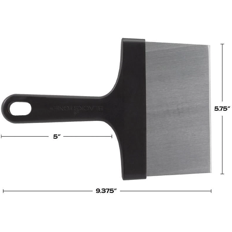Easily scrape and clean food off your griddle. Durable, rust-resistant, stainless steel construction with heavy-duty heat-resistant plastic handle. It can also be used as a food chopper on the griddle with the beveled edge on the stainless steel blade.