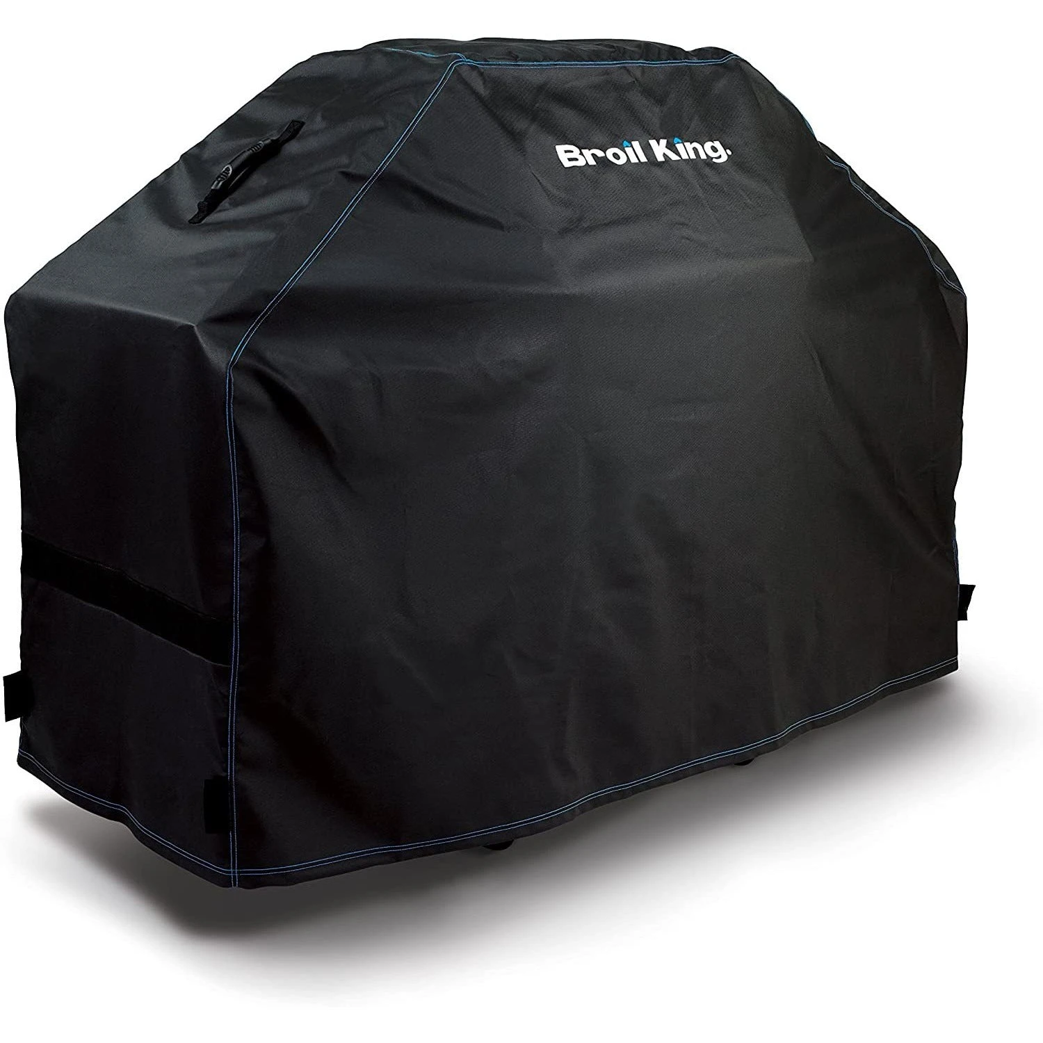 Made for the Imperial and Regal 400 Series bu Broil King. Crafted from water-resistant PVC with a heavy woven 900D polyester backing. Premium covers feature mesh venting for enhanced airflow and moisture resistance as well as hook and loop closures for a superior fit. Blue accent stitching adds style to the reinforced seams. Molded rubber handles make the cover easy to remove. The Broil King® logo is stitched onto the front. Well-crafted covers to protect well-built grills!