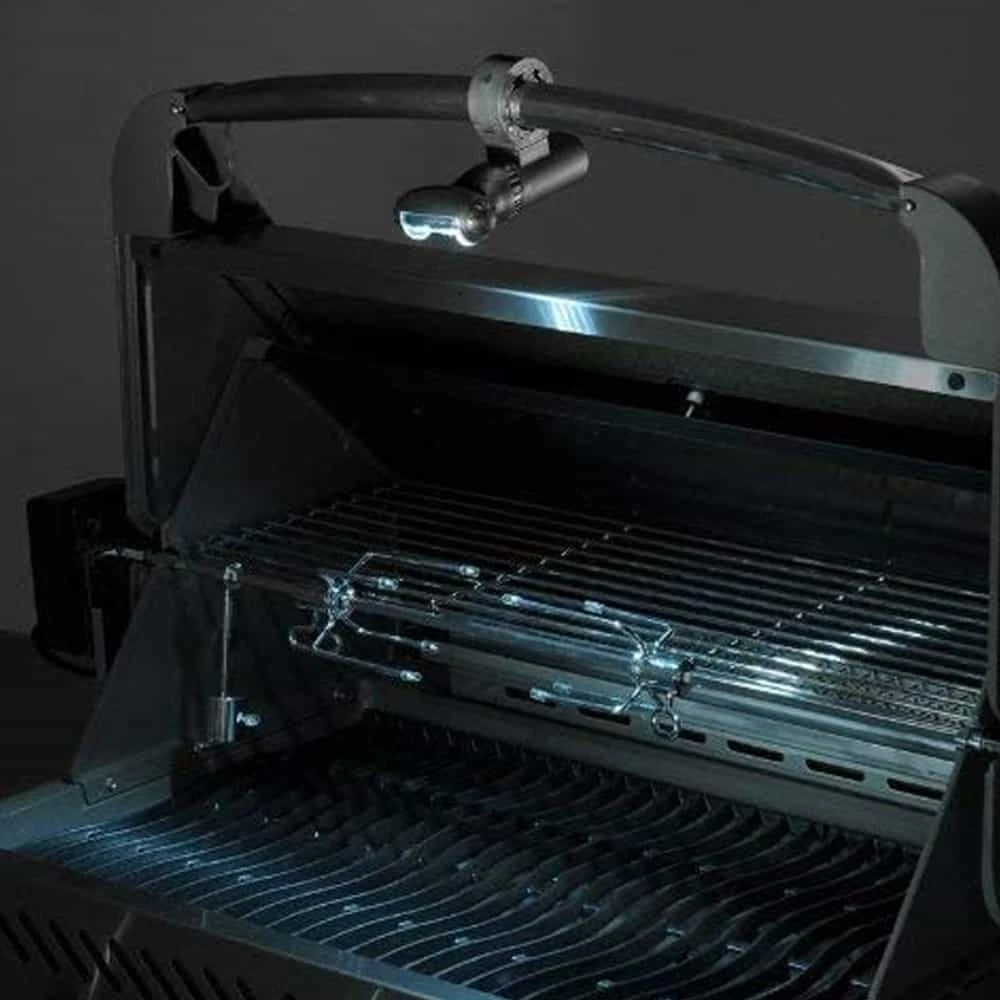 Barbecue handle light includes 3 AA batteries. Fits most grills. 5 bright LED’s with 360° pivot head.