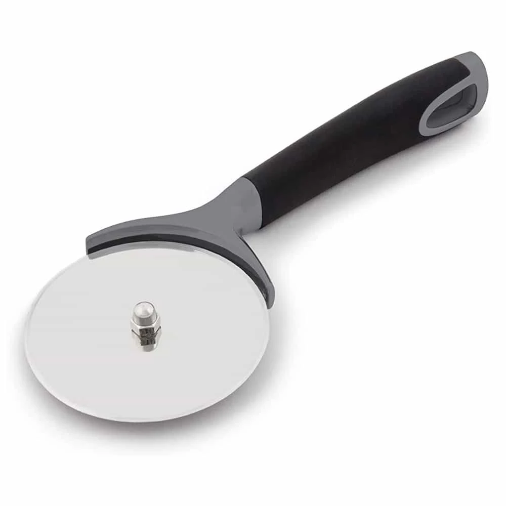 This large diameter ergonomic handle pizza cutting wheel has a stainless steel blade and soft-grip handle. It’s great for fresh or frozen pizzas.