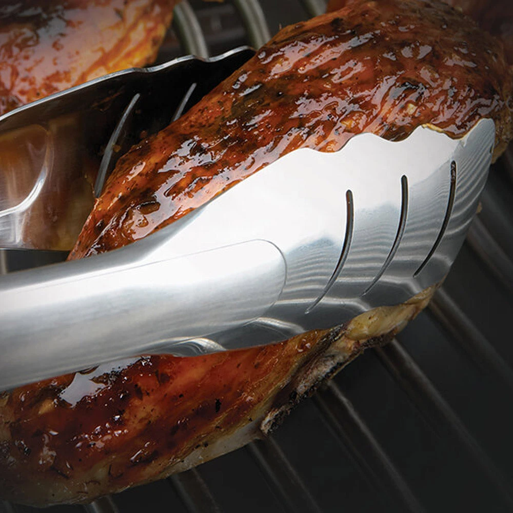 Sick of fiddling with the metal ring that locks your tongs closed? Napoleon’s PRO Series Easy Locking Tongs are here. Simply point the tongs down to open them, then close and point up to lock them. It’s that easy. These fifteen-inch stainless steel tongs are dishwasher safe for easy cleanup too. The stainless steel construction is wear-resistant and will match your grill nicely. They’re ergonomically built to fit the smallest to the biggest hands with no trouble. Add the Napoleon PRO Series Easy Locking Tongs to your grilling arsenal. With one-handed operation and the longevity of the stainless construction, you won’t be disappointed.