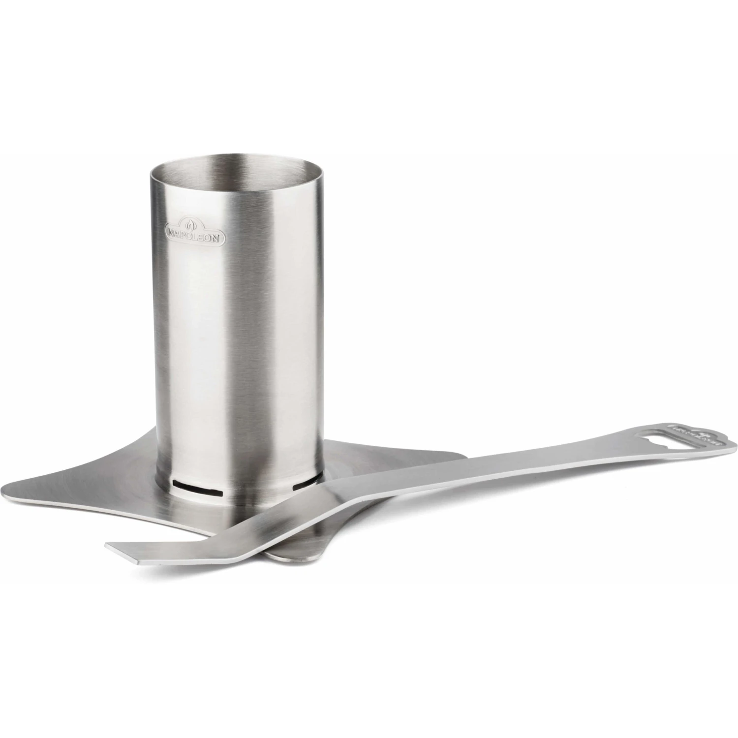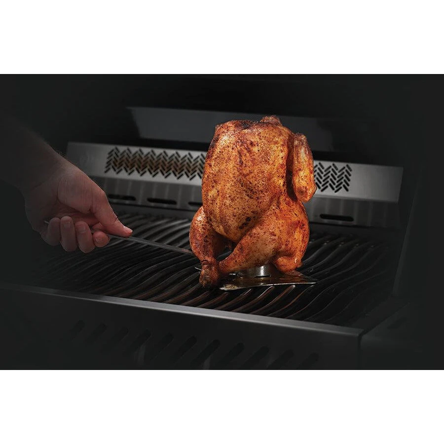 This stainless steel chicken roaster is a compact cooking tool that brings big flavor. The container holds 250 ml (1 cup) of your preferred liquid for sumptuous beer can-style chicken. Get creative and try juices, wines, or other liquids. The sturdy, removable handle makes moving your meal safe and easy while freeing up valuable grill space. This chicken roaster is also dishwasher safe.