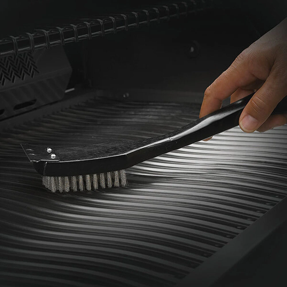 Use the Stainless Steel Grill Brush to keep your grill’s stainless steel cooking girds clean. A clean grill is a happy grill. You should brush the stuck-on foods from your grill with a grill brush after every time you grill, while the grill is still hot, and again before grilling your next meal. The stainless steel bristles on the Stainless Steel Grill Brush will not damage your stainless steel cooking grids and will last a long time. The Napoleon Stainless Steel Grill Brush is 18 inches long, giving you easy leverage for getting at that tough stuck-on food, and has a metal scraper on the head for particularly tough spots. The Stainless Steel Grill Brush features a black hardwood handle that has a hanger for easy storage. The handle is also ergonomic and makes it easy to quickly clean off the grime. Keep your grill clean with the Napoleon Brass Grill Brush.