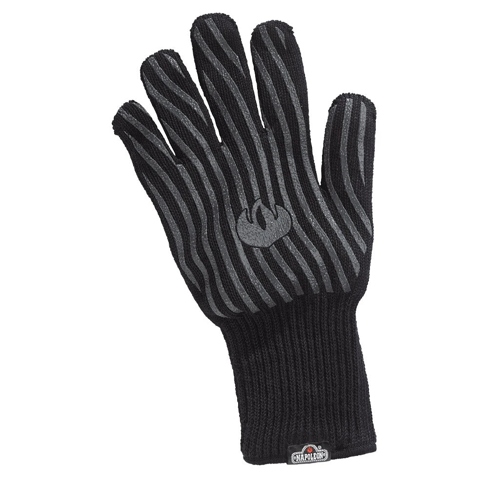 Never worry about burns again when handling hot objects. The Napoleon Heat Resistant BBQ Glove handles hot things up to 475°F and is good for use in the house, outdoors and anywhere things are getting hot. This glove is made from aramid fibers, used in the aerospace industry; a soft cotton liner provides maximum comfort and grey silicone grips line the glove on both sides so nothing will escape your grasp. ReveRSIBle for left and right-handed people, this glove is also machine washable, so if you spill, there’s no worry about cleanup.