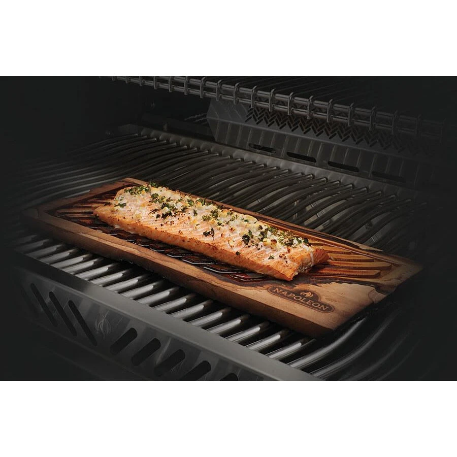 Made from natural Canadian western red cedar, the Napoleon Grills 67037 PRO Cedar Infusion Plank infuses your favorite planed food with an amazing smoky flavor. This plank allows you to flambé steak and delectable dessert and prevents pooling and dripping.