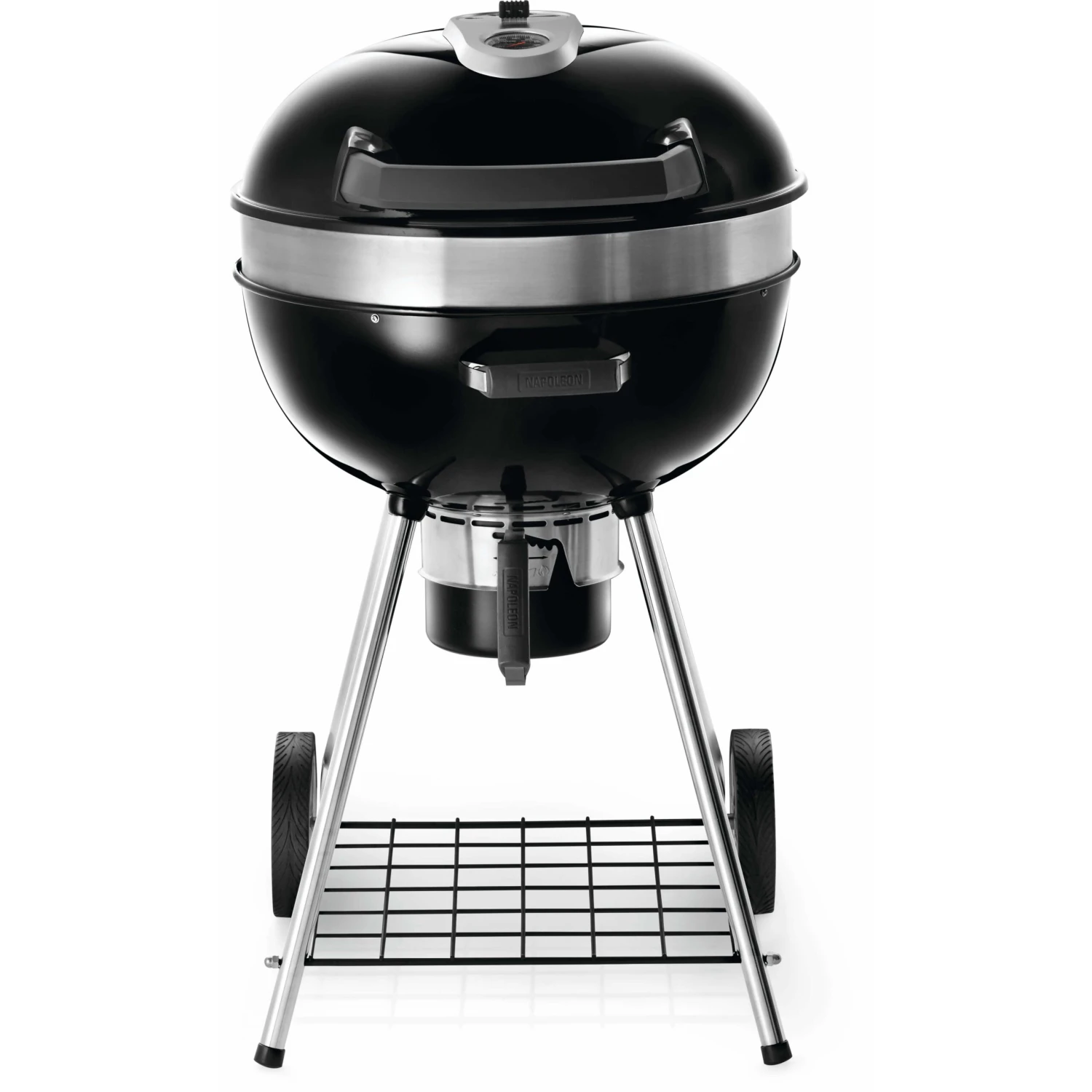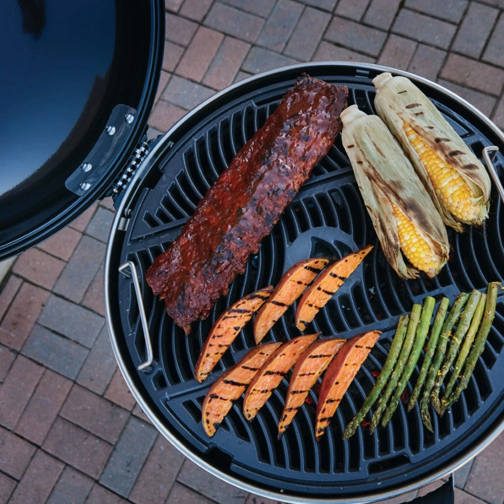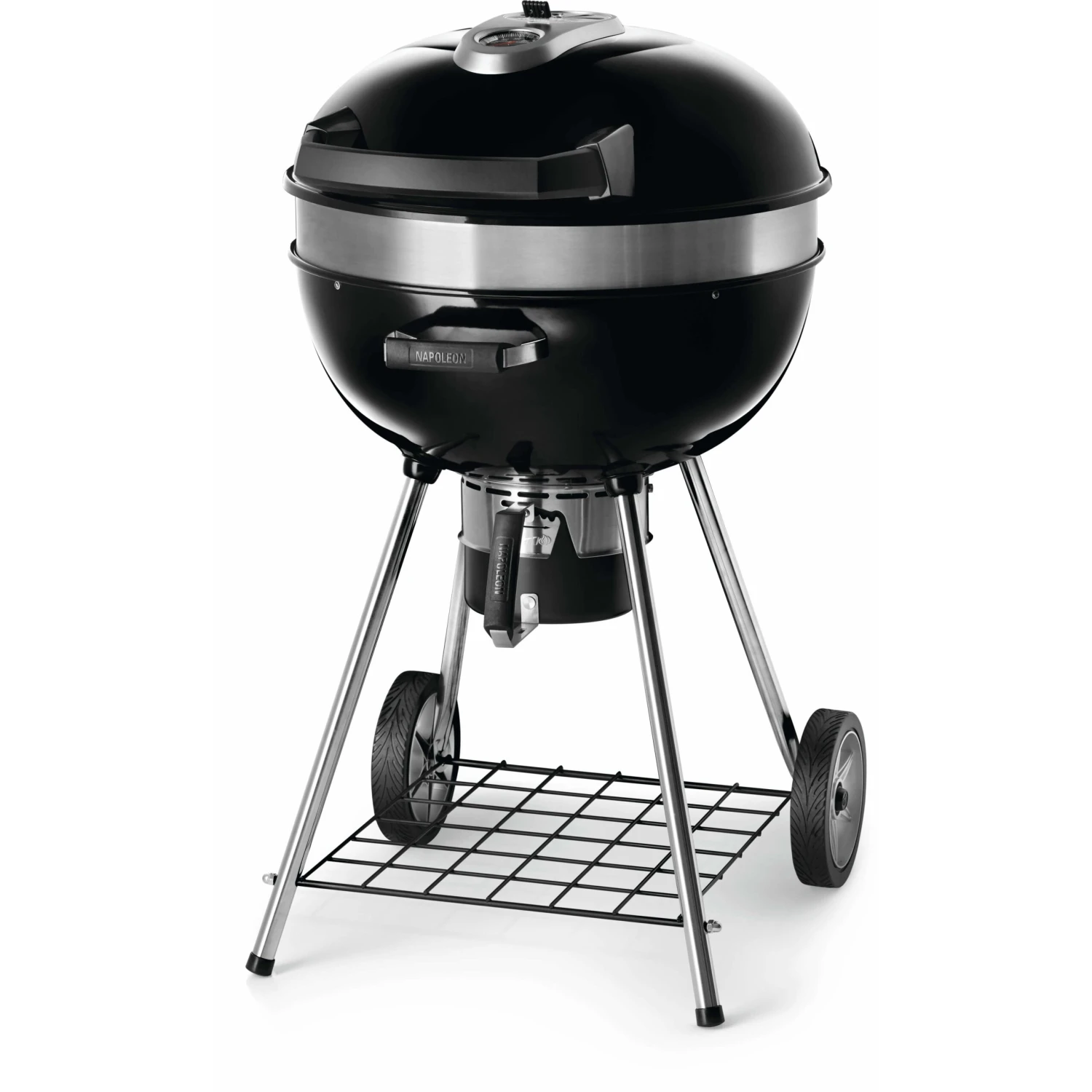 Many grilling enthusiasts prefer to cook with charcoal, the original infrared grilling fuel. Napoleon’s PRO Kettle Grill is compact to save space but big enough to feed a crowd, grilling up to 23 hamburgers at once. Grill, roast, and smoke with ease, the porcelainized cast iron cooking grids are hinged for easy access when reloading coals or adding wood chips and chunks. Adjust the cooking grids to three different levels for increased heat control. Master airflow and burn with our PRO Air Control system that provides more efficient air handling, prevent water from entering the grill, and functions as a large ash catcher. A large stainless steel heat diffuser lifts the charcoal up off the bowl of the kettle evenly radiating heat throughout the grill and directing spent charcoal down to the ash catcher. On the outside, this grill shines. The powder-coated enameled steel body shrugs off the elements. The lid features an offset hinge that opens, allowing access to the whole grill while keeping your hands away from the heat. Bring the PRO Kettle Grill wherever the action is, the rugged wheels traverse terrain with ease. Cooking like a PRO with charcoal has never been easier.