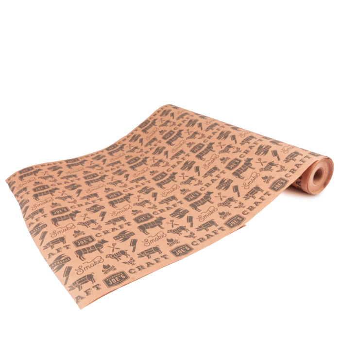 Oklahoma Joe’s Peach Butcher Paper is made in the USA and FDA-approved. Its heat-resistance and breathability allow steam to escape and create delicious bark while added sizing offers leak protection and strength when wet.